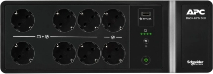 Betrouwbare UPS voor thuis en kantoor: 500 VA / 300 W, in totaal 8× Schuko (waarvan 6 met accu-back‑up + overspanningsbeveiliging en 2 alleen met overspanningsbeveiliging), snel laden via USB A + USB C, duidelijke LED‑indicatoren en demptoets, software PowerChute voor automatisch afsluiten en door de gebruiker vervangbare batterij. 2–3 jaar garantie en bescherming van aangesloten apparatuur tot 100.000 EUR.