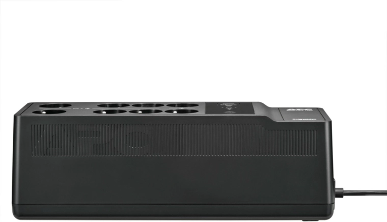 APC Back-UPS 1050VA/600W beschermt je elektronica tegen stroomuitval en overspanning en laat je meerdere apparaten tegelijk van stroom voorzien. Hij biedt 8 stopcontacten van het type E (Frans), waarvan 6 met batterijbackup en overspanningsbeveiliging en 2 alleen met overspanningsbeveiliging. Handige USB-A en USB-C voor snel opladen, stille modus, LED-indicatie, ondersteuning voor PowerChute, door de gebruiker vervangbare batterij en 2–3 jaar garantie voor zorgeloos gebruik.