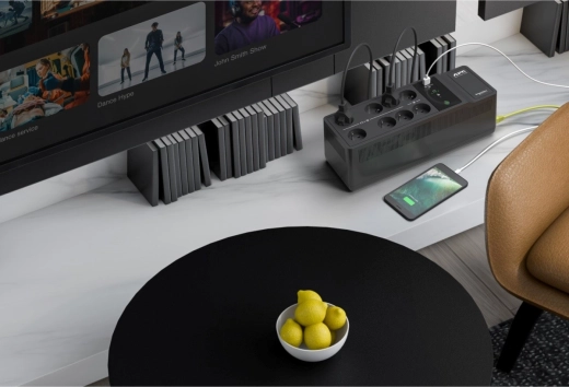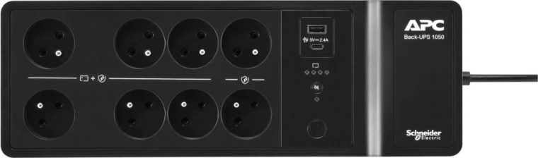 De betrouwbare noodstroomvoorziening voor thuis en kantoor, APC Back-UPS 1050VA, houdt je essentiële apparatuur draaiende bij stroomuitval en beschermt tegen piekspanningen. Dankzij 8 stopcontacten type E sluit je pc, router, NAS, tv en laders aan, terwijl USB-A en USB-C je telefoon of tablet comfortabel opladen.