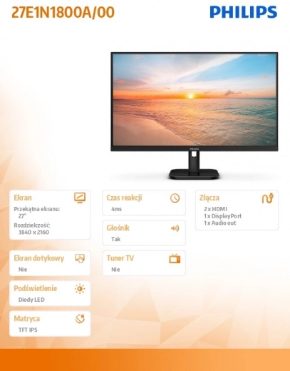 De ideale keuze voor werk en ontspanning: het 27" IPS-scherm met UHD 4K-resolutie levert uitzonderlijke detailweergave, nauwkeurige kleuren en stabiel contrast, ongeacht de kijkhoek. Dankzij twee HDMI-poorten en één DisplayPort sluit je moeiteloos laptop, pc en multimedia-apparaten aan.
