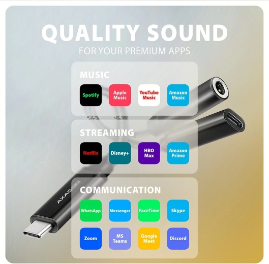 De externe geluidskaart ADA-HCPD is niet alleen een uitstekende oplossing voor apparaten zonder audiojack, maar dankzij Power Delivery 3.0 met een vermogen tot 60 W kun je tegelijkertijd je smartphone of laptop opladen, zodat je je geen zorgen hoeft te maken over het steeds loskoppelen van je hoofdtelefoon. Geniet van uitmuntend geluid bij het luisteren naar muziek, het kijken van films of het gamen. Deze adapter ondersteunt lossless formaten zoals FLAC, WMA, WAV, APE, AAC en ALAC en is compatibel met platforms zoals Spotify, Apple Music en meer.