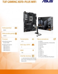 TUF Gaming X870-PLUS WIFI combineert de nieuwste AMD-platformtechnologie met focus op duurzaamheid en stabiliteit. Dankzij hoogwaardige VRM’s, grote koelblokken en een doordachte lay-out levert het consistente prestaties, lage temperaturen en brede compatibiliteit met high-end componenten.