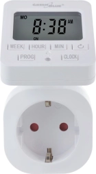De digitale tijdschakelaar GREENBLUE GB605 F helpt je slim energie te besparen en het comfort in huis en op kantoor te verhogen. Hij biedt tot 18 programma’s, nauwkeurige instelling per 1 minuut, max. belasting 3680 W en functies zoals Random voor aanwezigheidsimulatie, aftellen en omschakeling tussen zomer-/wintertijd.