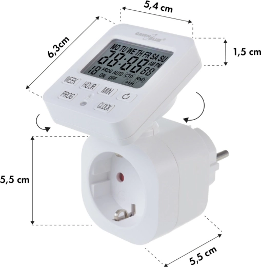 Maak van alledaagse apparaten slimme helpers. De digitale timer GREENBLUE GB605 F met F-stekker (Schuko) schakelt automatisch verlichting, aquaria, ventilatoren, laders of verwarmingselementen in en uit. Dankzij de nauwkeurigheid van 1 minuut heb je volledige controle over de werking en verlaag je onnodig verbruik.