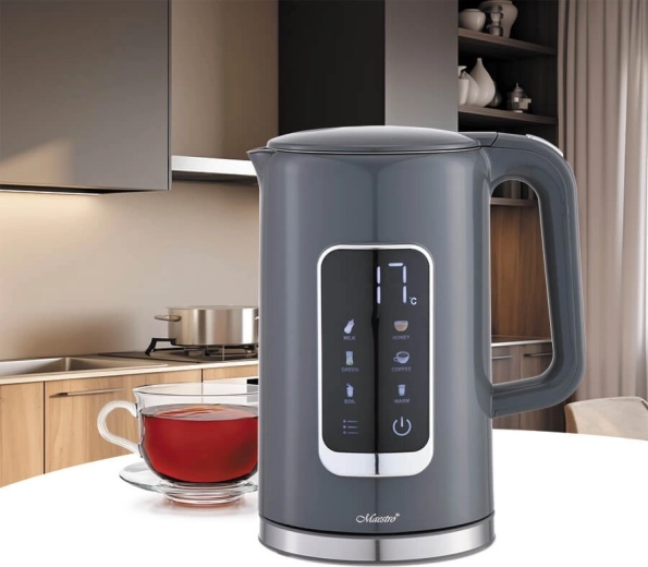 De Elektrische waterkoker Maestro heeft een aanraakbedieningspaneel met de mogelijkheid om de temperatuur in te stellen, wat een precieze aanpassing aan uw behoeften mogelijk maakt: