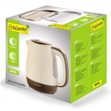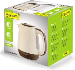 Elektrische waterkoker Maestro is uitgerust met een draaiende basis van 360°, waardoor u het overal kunt plaatsen, ongeacht de positie van de handgreep. Het verborgen verwarmingselement vergemakkelijkt het onderhoud van de waterkoker, terwijl het praktische openen van het deksel met een enkele knop op de handgreep het gebruikscomfort verhoogt. Voor een geordende werkruimte is er opslagruimte voor de kabel van 70 cm. Automatische uitschakeling bij watertekort beschermt tegen oververhitting en garandeert veiligheid. Dankzij de afmetingen 22 x 21 x 15 cm is de waterkoker compact en geschikt voor dagelijks gebruik.