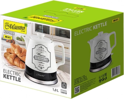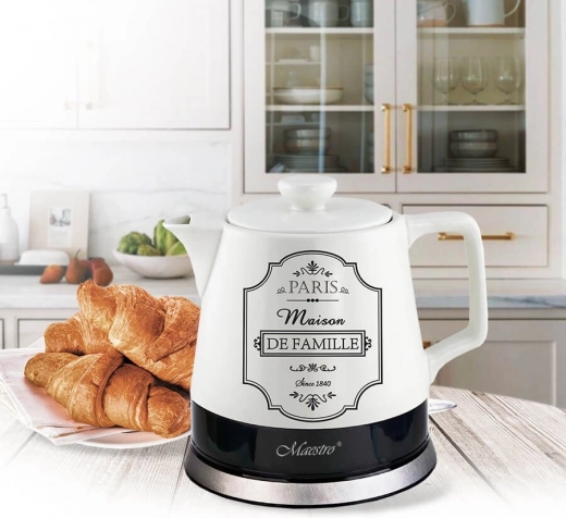 De elegante keramische waterkoker MAESTRO PARIS MAISON brengt stijl en functionaliteit in je keuken. Een keramische behuizing houdt de warmte beter vast, het verborgen verwarmingselement maakt reinigen eenvoudiger en de 360° draaibare basis met verlichte schakelaar zorgt elke dag voor gebruiksgemak.