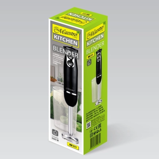 Ontdek een betrouwbare hulp voor dagelijks koken. De Maestro staafmixer met 500 W vermogen mixt ingrediënten snel tot een fijne consistentie – van romige soepen en smoothies tot zelfgemaakte mayonaise. Twee snelheidsstanden en een Turbo-modus geven u controle over het resultaat, terwijl de roestvrijstalen messen zorgen voor een lange levensduur en een precieze snede.
