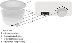De droger kan tot 40 uur onafgebroken werken, wat praktisch is bij het verwerken van grotere hoeveelheden voedsel. De hoogte is 26 cm en de netsnoerlengte is 115 cm, wat plaatsing op het aanrecht vergemakkelijkt.