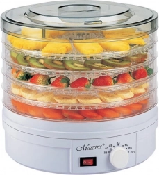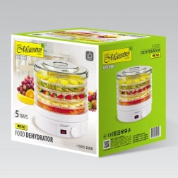 De Maestro-droger is uitgerust met 5 roosters met een diameter van 32 cm, waarmee u in één keer een grote hoeveelheid ingrediënten kunt drogen.