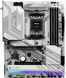 Doordacht design voor eenvoudige montage: gereedschapsloze M.2‑bevestiging met meerlaagse heatsink en snelle ontgrendeling, versterkte stalen PCIe 5.0‑sleuf, geïntegreerd I/O‑schild met fijnafstelling van de pasvorm en BIOS Flashback om te updaten zonder CPU en RAM.