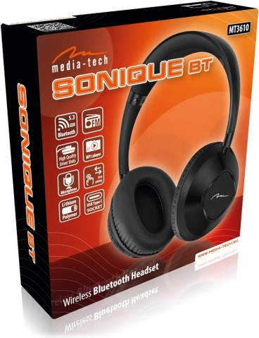 Ontdek de vrijheid van luisteren met de MEDIA-TECH SONIQUE BT koptelefoon met Bluetooth 5.3. Biedt een stabiele draadloze verbinding, geïntegreerde FM-radio (87–108 MHz), MP3-speler vanaf TF-kaart tot 64 GB, kwaliteitsmicrofoon voor gesprekken en ruimtelijk stereogeluid in het bereik van 20 Hz–20 kHz. Bij een lege batterij schakel je over naar de bedrade modus via 3,5mm jack. Het lichte ontwerp, zachte oorkussens en tot 8 uur accuduur garanderen de hele dag comfort.