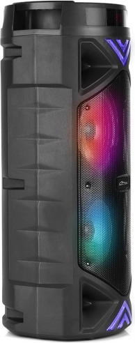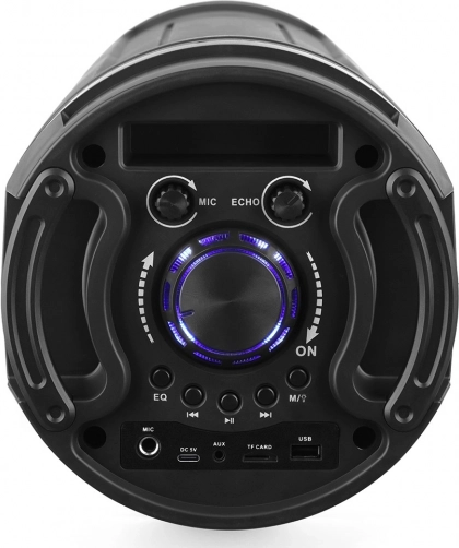 Karaokeliefhebbers waarderen de 6,3 mm microfooningang met volumeregeling en ECHO-effect. Met de afstandsbediening heb je alle functies onder controle zonder naar de speaker te hoeven lopen. Gekleurde LED-effecten geven elk feest de juiste sfeer.