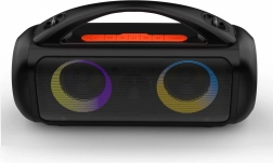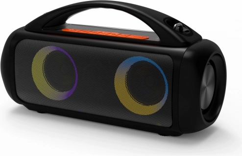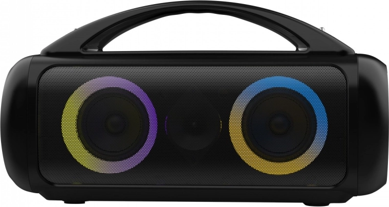 De verfijnde akoestiek met 2× 3" drivers en 2× passieve radiatoren levert diepe bassen en heldere hoge tonen binnen het bereik van 100–20.000 Hz. Het compacte formaat, de geïntegreerde handgreep en de schouderriem maken meenemen makkelijk. RGB‑ringeffecten versterken de sfeer van elke party.