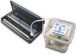 SOLIS Vac Smart helpt voedselverspilling te verminderen en houdt eten langer smakelijk. Vacumeer rollen en zakken tot 30 cm breed of voedingsmiddelen in afgesloten vacuümcontainers (via een optionele slang). Strak verpakt voedsel behoudt geur, smaak en structuur langer en is ideaal voor sous‑vide koken.