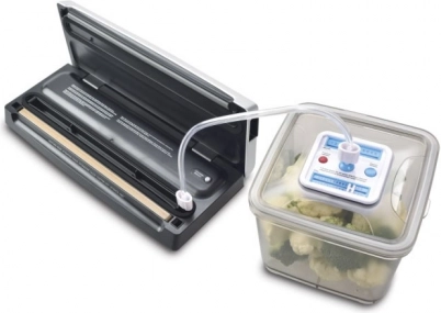 Vacuümverpakking verlengt de houdbaarheid, beschermt tegen vriesbrand en bespaart ruimte. Vacumeer rollen en zakken tot 30 cm breed of gebruik vacuümcontainers met een aansluitbare slang; ook perfect voor sous‑vide.