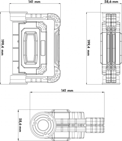 De praktische afmetingen van 199,4 × 141 × 58,6 mm en IP44-afdichting maken hem tot een ideale keuze voor gebruik binnen en buiten.
