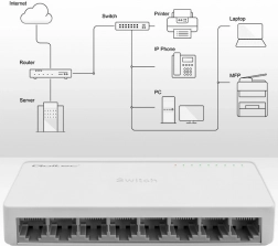 Breid uw netwerk eenvoudig en moeiteloos uit. Deze compacte Qoltec-switch laat u tot acht apparaten tegelijk aansluiten en zorgt voor vloeiende overdracht van films, games en werkbestanden. Dankzij automatische kruisbedrading (Auto MDI/MDI-X) op elke poort zijn speciale kabels overbodig en is de installatie in een oogwenk gereed.