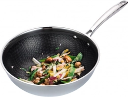 Zoekt u een veelzijdige pan voor intensief bakken, roerbakken en Aziatische specialiteiten? Deze MAESTRO wok van 30 cm biedt professionele prestaties in zowel de thuis- als de profkeuken. De driedelige constructie (rvs 430 – aluminium kern – rvs 304) geleidt warmte van de bodem tot aan de randen, zodat ingrediënten snel en gelijkmatig garen.