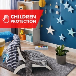 Vier gekleurde stopcontacten met kinderslot zorgen voor veiligheid in huishoudens met kinderen en maken het eenvoudig om apparaten te onderscheiden.
