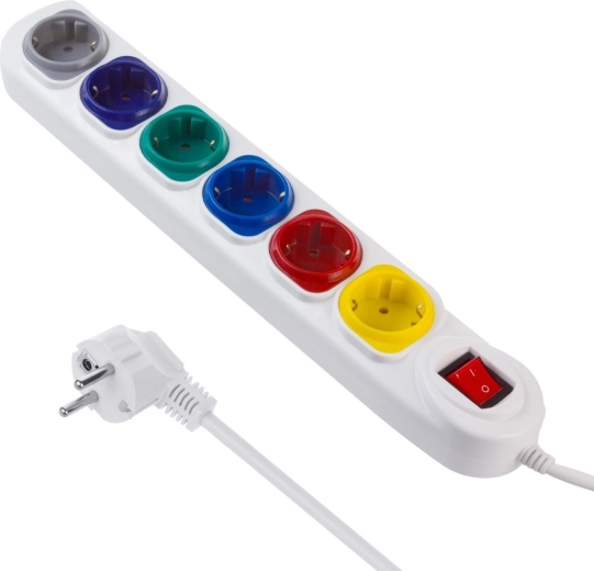 Zes gekleurde stopcontacten maken het gemakkelijk om aangesloten apparaten te herkennen en geven een esthetische uitstraling.