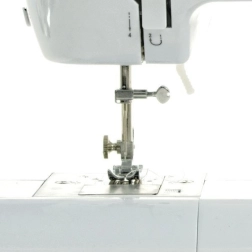 Naaien met de Lena 2019 kan ook zonder voetpedaal dankzij de schuifregelaar op de behuizing. Deze activeert langzaam of iets sneller automatisch naaien - dat wil zeggen dat de machine zelf naait. Deze modus is makkelijker voor beginners, omdat hij geen hand-voetcoördinatie vereist. De naaimachine Lena 2019 biedt ook de mogelijkheid om een minipedaal aan te sluiten en zo voetbediening te activeren. Daardoor is hij de ideale introductie tot het naaien, waarbij je geleidelijk went aan het gebruik van een ‘volwassen’ machine.