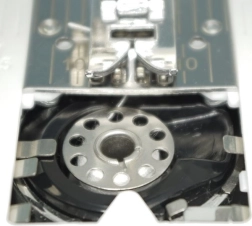 De Łucznik-machine werkt het best met stoffen van eenvoudige structuur en geringe dikte. Aan de zijkant van de machine bevindt zich een draadsnijder in de vorm van een gleuf, waarin de draad kan worden geplaatst om hem tot de gewenste lengte te verkorten. Bij de Lena 2019 is de snijder voorzien van een speciale kap die aanraking voorkomt.