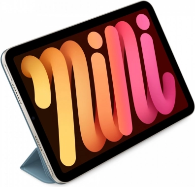 De dunne en lichte Apple Smart Folio-hoes voor iPad mini (A17 Pro) beschermt de tablet aan voor- en achterzijde en klikt dankzij magneten eenvoudig vast. Bij openen wordt de iPad automatisch geactiveerd en bij sluiten in slaapstand gezet. Het vouwontwerp vormt een standaard met meerdere posities voor lezen, kijken, schrijven en FaceTime, en biedt betrouwbare bescherming tegen krassen in een elegante denimblauwe uitvoering.