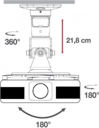 Deze beugel is ontworpen voor de veilige montage van projectoren en beamerprojectoren aan het plafond. Dankzij de robuuste constructie van aluminium en staal biedt hij maximale stabiliteit en isolatie voor uw apparaat. Met een lengte van 22 cm en een draagvermogen tot 10 kg is hij compatibel met een breed scala aan projectoren.