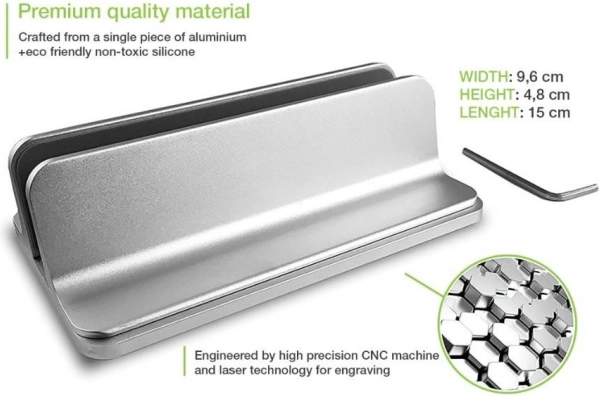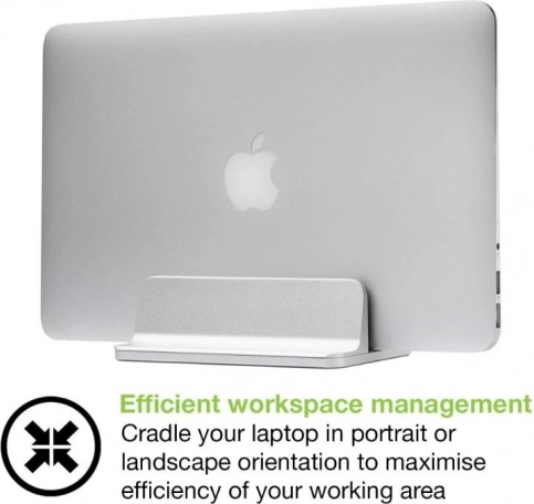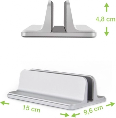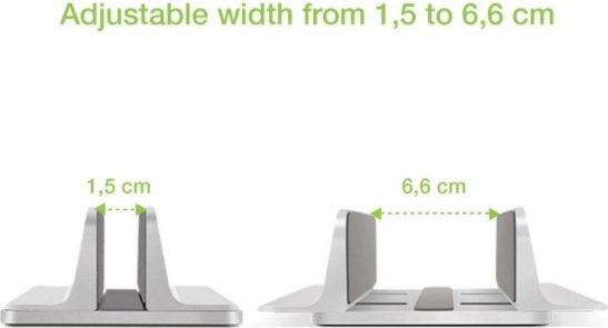 Praktische laptopstandaard met verticale plaatsing bespaart bureauruimte en houdt alles netjes. Biedt een verstelbare breedte van 1,5–6,6 cm voor de meeste modellen, rubberen beschermende inlays tegen wegglijden en krassen en is compatibel met laptops tot 17".