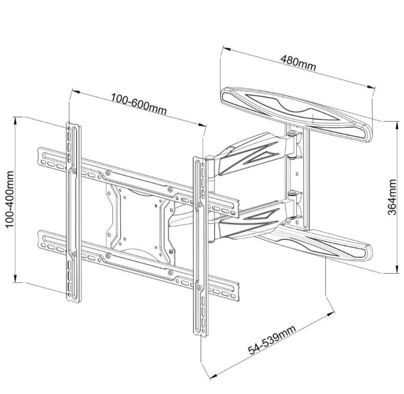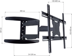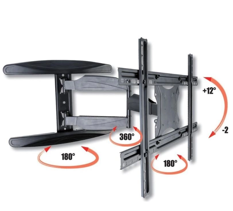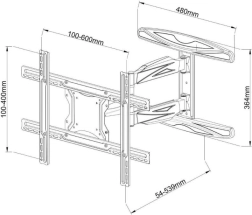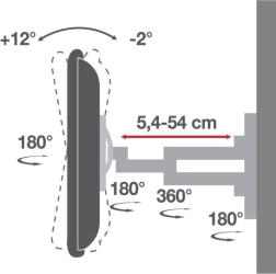 Functionaliteit en flexibiliteit: De beugel biedt een schermkanteling van -2° tot +12° en een draaibereik van ±90° tot ±180°. De afstand tot de muur is verstelbaar van 54 mm tot 539 mm, zodat hij kan worden aangepast aan verschillende behoeften en ruimtelijke indelingen.