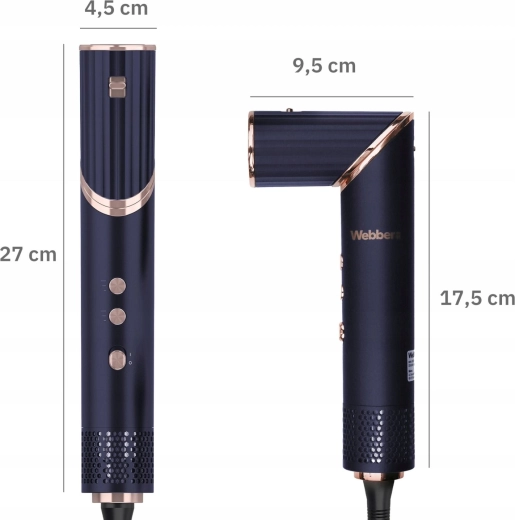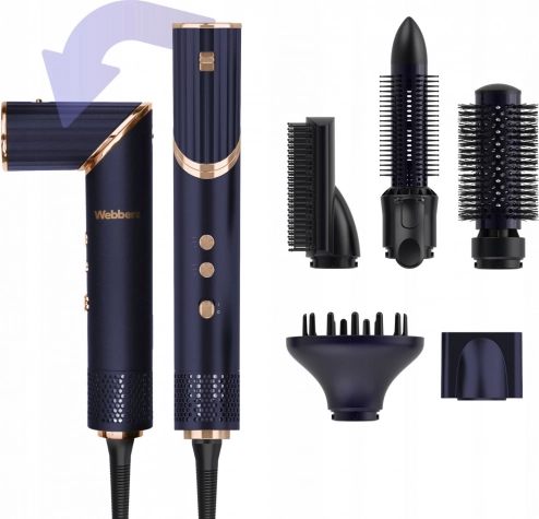 Universele föhn en multistyler 5-in-1 Webber CELIA voor snel drogen en precieze styling. Biedt 3 luchtstroomstanden, 3 temperatuurstanden, ionisatie, Ultra‑Silence-technologie, oververhittingsbeveiliging en een uitgebreide set opzetstukken: diffuser, concentrator, platte borstel, roterende borstel en ronde borstel. Lange 3 m kabel en koude‑luchtknop voor perfecte fixatie van het kapsel.