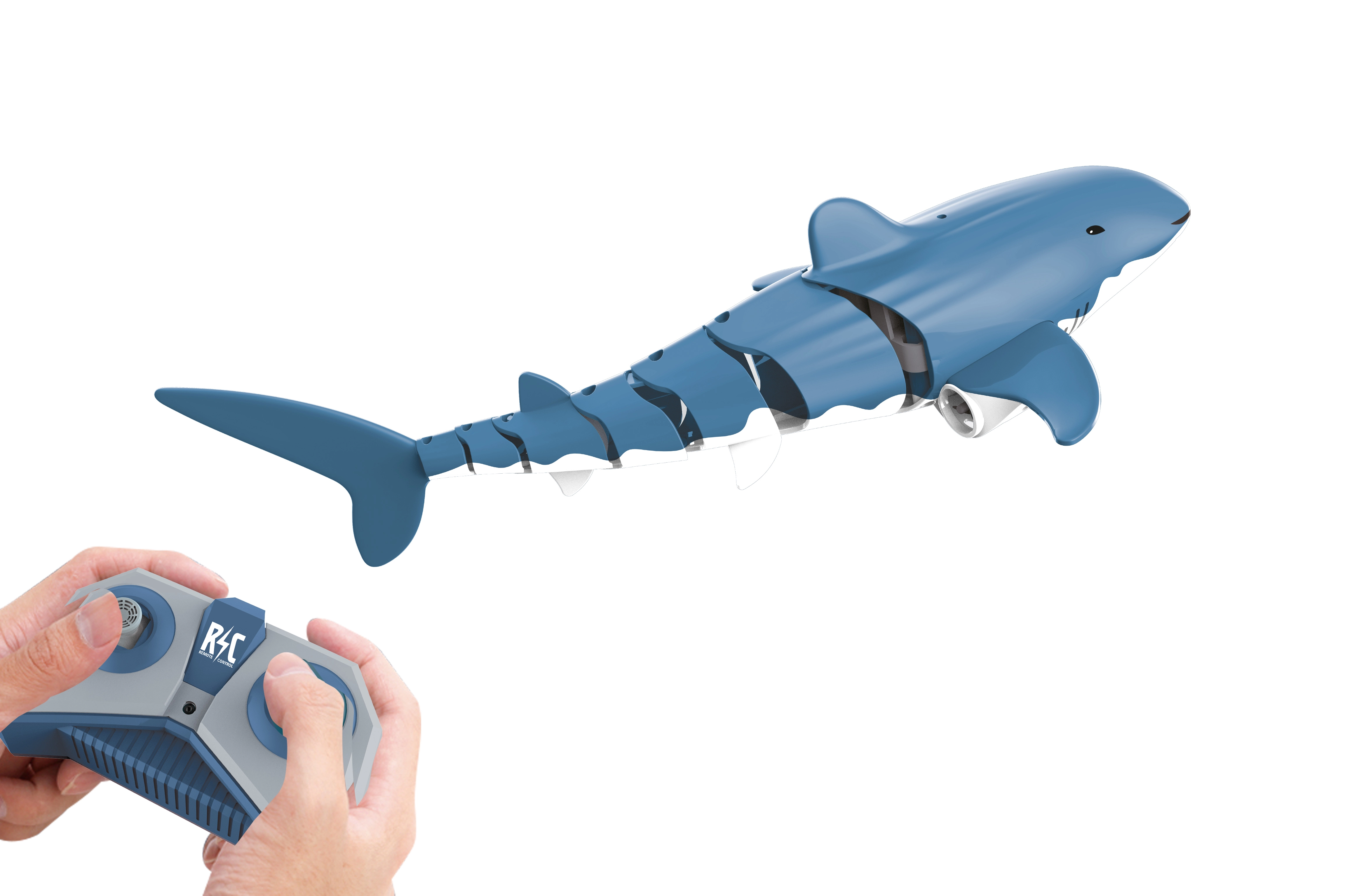 Het gesegmenteerde lichaam en de twee rotoren onder de voorvinnen zorgen voor een natuurlijke golfslag en wendbaarheid die een echte haai benaderen.
