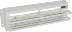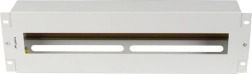 De robuuste metalen behuizing in grijs is geschikt voor montage in standaard 19" racks en biedt aarding voor een veilige werking. Het paneel biedt plaats aan tot 22 S-modules met een breedte van 17,5 mm, geschikt voor zowel kleinere als grotere installaties.