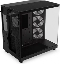 De NZXT H6 Flow RGB in het zwart combineert elegant panoramisch glas met geoptimaliseerde luchtstroom. De dual‑chamber constructie scheidt de voeding en bekabeling van de hoofdcomponenten, wat de temperaturen verbetert en zorgt voor een strakke, professionele look. Geperforeerde boven- en zijpanelen ondersteunen een hoge airflow en houden tegelijk stof tegen.