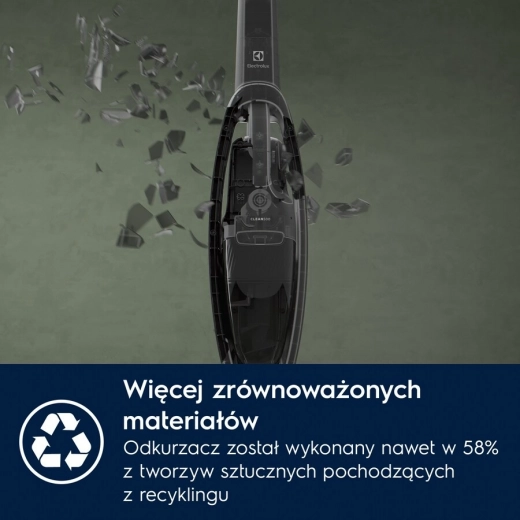 *Het aandeel gerecycled kunststof in de modellen van de Electrolux 500 accustofzuiger varieert tussen 64–74%.