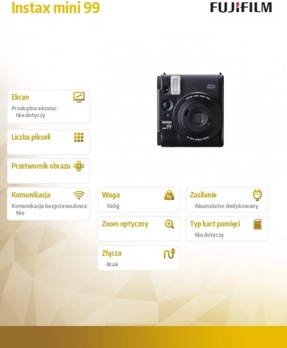 Geniet van instantfotografie met de Instax Mini 99, die een compact en elegant design, eenvoudige bediening en direct afdrukken van foto’s biedt.