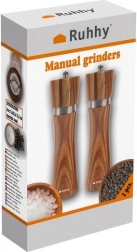 Ruhhy houten zout- en pepermolens - exclusieve set voor liefhebbers van kwaliteit en design. Handmatig instelbare molens bieden u: