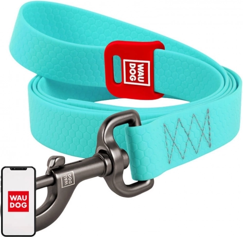 waterdichte lichtgevende hondenriem WAU DOG 20 mm, 183 cm – turkoois