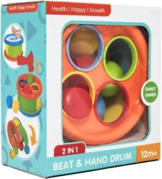 Hamertje en Trommel 2in1 biedt twee speelgoed in één – het slaan van balletjes met een hamertje en het spelen op een trommel. Dit kleurrijke en interactieve product ondersteunt de ontwikkeling van belangrijke vaardigheden bij kinderen.