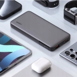 Compacte powerbank AUKEY Sprint X 10K met een capaciteit van 10.000 mAh en een vermogen van 30 W biedt snel opladen via PD 3.0 en QC 3.0, twee uitgangen USB‑C + USB‑A, een nauwkeurig LED‑display voor de batterijst status en een laagstroommodus voor oordopjes of smartwatches. Licht, zakformaat en ideaal voor onderweg en in het vliegtuig.