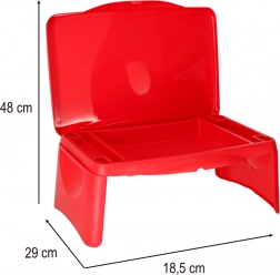 Het tafeltje vouwt snel op tot compacte afmetingen, is gemakkelijk te dragen en te reinigen. De duurzame kunststof uitvoering zorgt voor stabiliteit en veilig gebruik op schoot en op de zitting.
