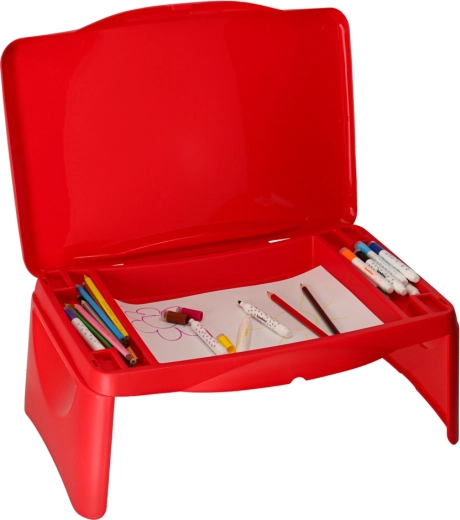 Dit compacte tafeltje voor kinderen biedt een stabiel oppervlak om te tekenen en te leren tijdens korte en langere reizen. Dankzij de geïntegreerde opbergruimte hebben potloden, stiften en papier altijd een vaste plek – zonder rommel eromheen.