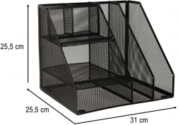 Het zwarte metalen gaas geeft de organizer een minimalistische uitstraling, perfect voor elke ruimte.