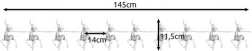 Dankzij de batterijvoeding is er geen stopcontact nodig, wat zorgt voor gemakkelijke mobiliteit. De rendieren aan de slinger zijn van transparant kunststof, wat effectieve lichtverstrooiing mogelijk maakt. Elk rendier is 11,5 cm hoog en de onderlinge afstand is 14 cm, wat voor een harmonische lichtverdeling zorgt. Geschikt voor het versieren van de boom, ramen, schoorsteenmantel of planken – overal creëert het een magische sfeer.