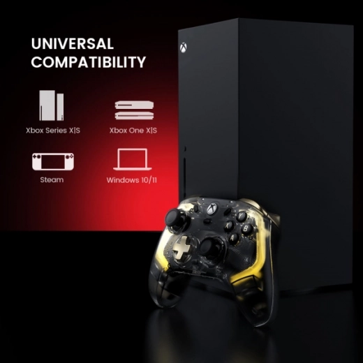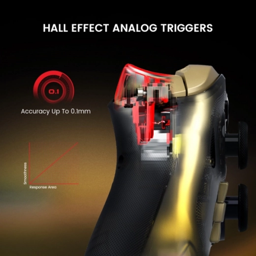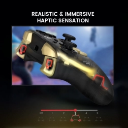 De controller is geautoriseerd voor XBOX en gebruikt Hall-effecttechnologie voor een lange levensduur zonder drift. Analoge triggers met een soepele slag registreren exact de drukdiepte – ideaal voor race- en actiegames. Vier vibratiemotoren (in de grepen en in de triggers) leveren een realistische haptische feedback.
