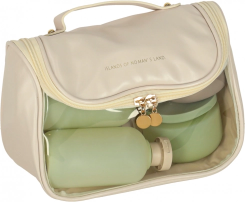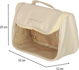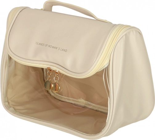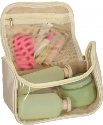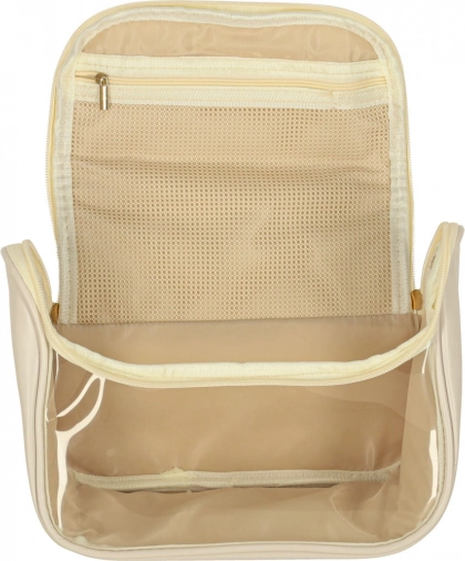 De beige reistoilettas is de perfecte oplossing voor het gemakkelijk organiseren van je cosmetische producten tijdens het reizen. Een ruim hoofdvak en een praktische mesh-binnentas maken het mogelijk je favoriete cosmetica en accessoires overzichtelijk te rangschikken.