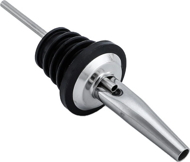 Ontdek de praktische schenker die op bijna alle flessen op de markt past. Dankzij de rubberen afsluiting zorgt hij voor een strakke afdichting tussen de schenker en de flessenhals. Het moderne ontwerp maakt gemakkelijk schenken mogelijk zonder druppelen of langs de flessenhals te lopen.