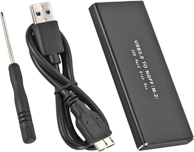 - SSD‑adapter voor het aansluiten van een M.2‑schijf op de USB‑poort van een computer.