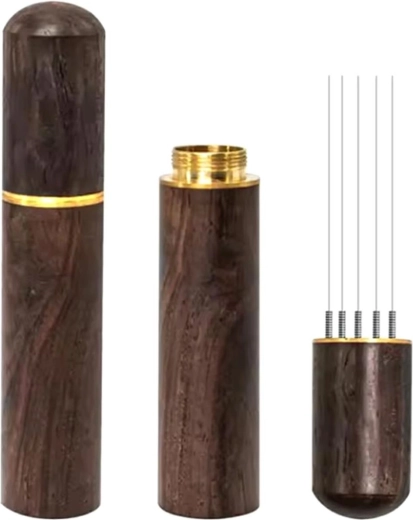 Compacte roerder, naalden voor koffiedistributie. Ergonomisch design, uitgerust met een comfortabele handgreep en een kap met houtlook. Ideaal om channeling te corrigeren bij espressomachines. Universele afmetingen – geschikt voor de meeste espressomachines en koffiemachines.
